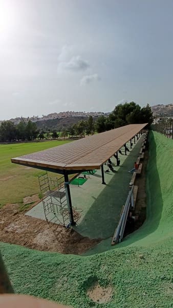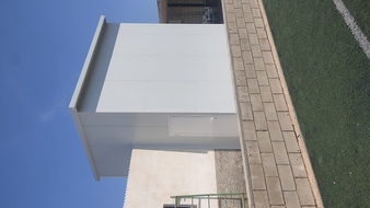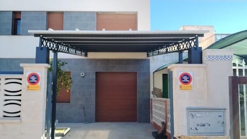 El diseño es elegante y queda muy bonito a la vista. Los techados suelen ser con panel de sandwich, este material es ligero, protege contra el agua y es un buen aislante térmico, característica que es de agradecer en nuestra zona sobre todo en la época estival donde tanto calor hace. Los acabados son muy elegantes ya que en la parte inferior se pueden forrar de madera y en la parte exterior vista desde arriba se puede apreciar la forma de las tejas. Llama la atención ya que éstas no son reales, pero parece un tejado real.