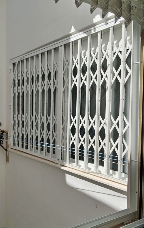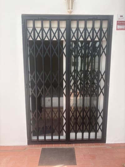 Cuando es necesaria la apertura de la reja porque es una zona de paso o simplemente no queremos que sea una reja fija, las rejas plegables o de ballesta serían una buena opción. Su apertura como su propio nombre indica es de forma que queda plegada sobre sí misma quedando recogida en los laterales de la puerta o ventana y para el cierre pueden venir incorporadas con una cerradura o bien instalar un candado que cierra una hoja con la otra.